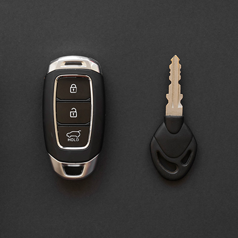 A car key is called an automobile key. It is used to open and/or start an automobile. Modern key designs are usually symmetrical, and some use grooves on both sides, rather than a cut edge, to actuate the